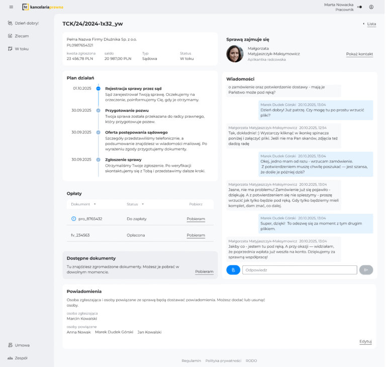 Czasem jedno szybkie pytanie potrafi zaoszczędzić wiele nieporozumień i godzin czekania na odpowiedź. Dlatego w Aplikacji TC Kancelaria wprowadziliśmy czat […]